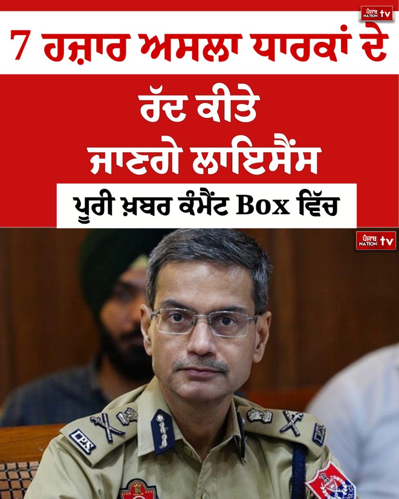 ਚੰਡੀਗੜ੍ਹ: ਸੂਬੇ ਵਿੱਚ ਕਾਨੂੰਨ-ਵਿਵਸਥਾ ਨੂੰ ਮਜ਼ਬੂਤ ਕਰਨ ਦੇ ਮੱਦੇਨਜ਼ਰ ਪੰਜਾਬ ਪੁਲਿਸ ਵੱਲੋਂ ਅਸਲਾ ਲਾਇਸੈਂਸਾਂ ਦੀ ਵਿਆਪਕ ਸਮੀਖਿਆ ਸ਼ੁਰੂ ਕੀਤੀ ਗਈ ਹੈ। ਮੀਡੀਆ ਰਿਪੋਰਟਾਂ ਅਨੁਸਾਰ ਡੀ.ਜੀ.ਪੀ. ਗੌਰਵ ਯਾਦਵ ਨੇ ਕਿਹਾ ਹੈ ਕਿ ਰਿਵਿਊ ਪ੍ਰਕਿਰਿਆ ਤੋਂ ਬਾਅਦ ਲਗਭਗ 7 ਹਜ਼ਾਰ ਅਸਲਾ ਲਾਇਸੈਂਸ ਰੱਦ ਕੀਤੇ ਜਾ ਸਕਦੇ ਹਨ।